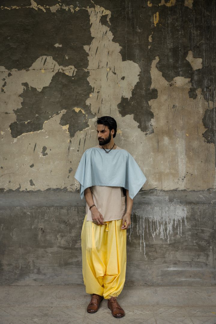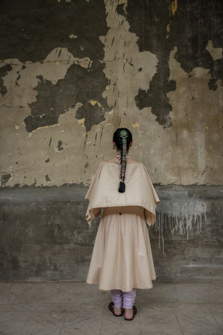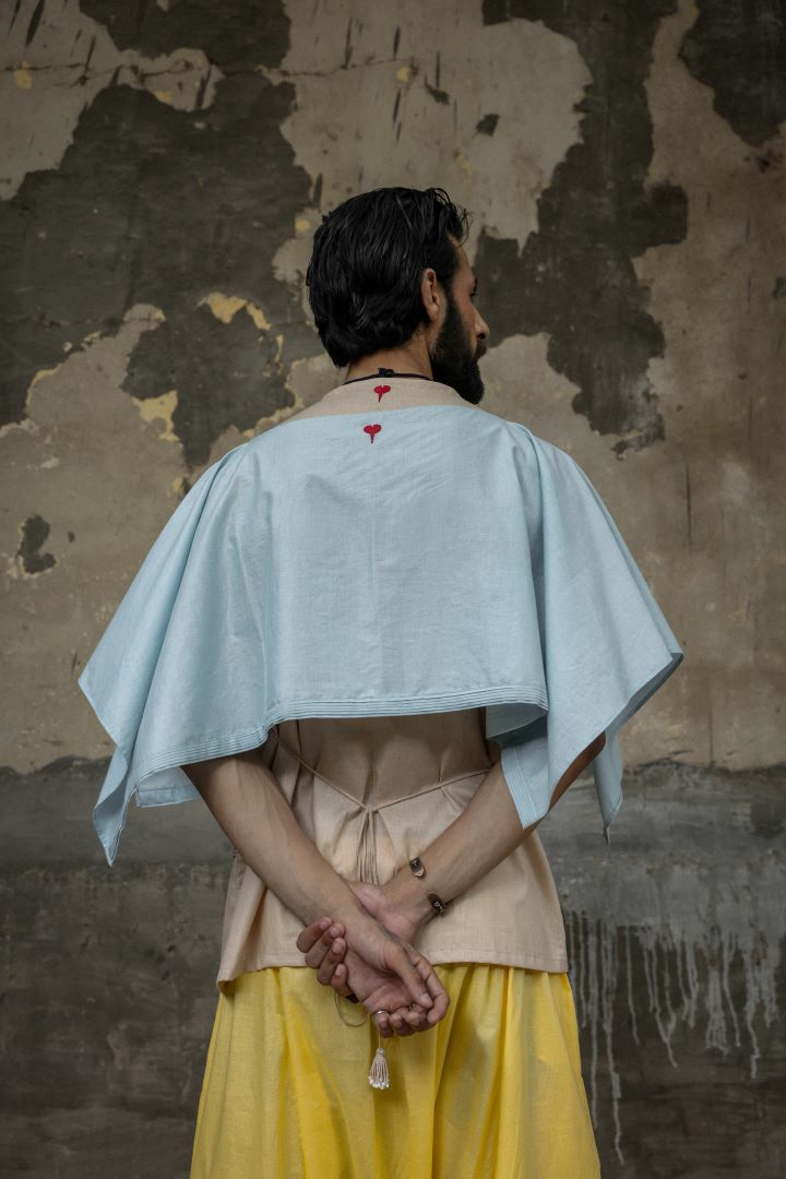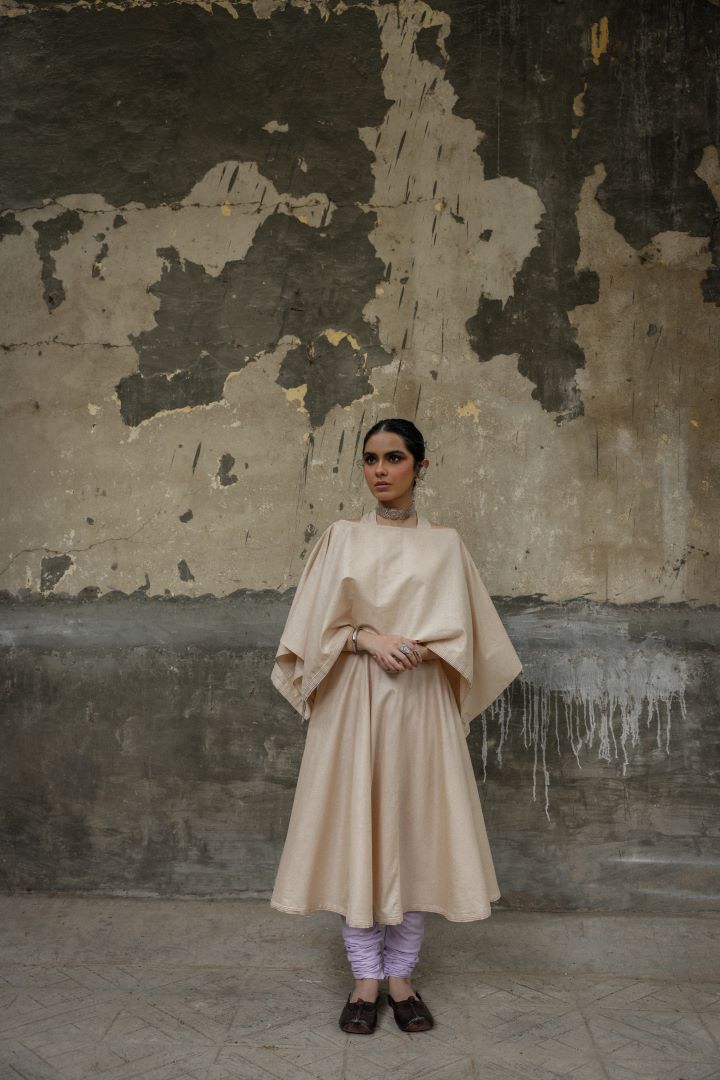 Bakhtawar is our short summer poncho with a single slit between the shoulders and neck. An easy to pair versatile piece, Bakhtawar keeps you cool and covered. YBQ's signature finish, the Heart is stamped behind the neck with pintucks on the edges.