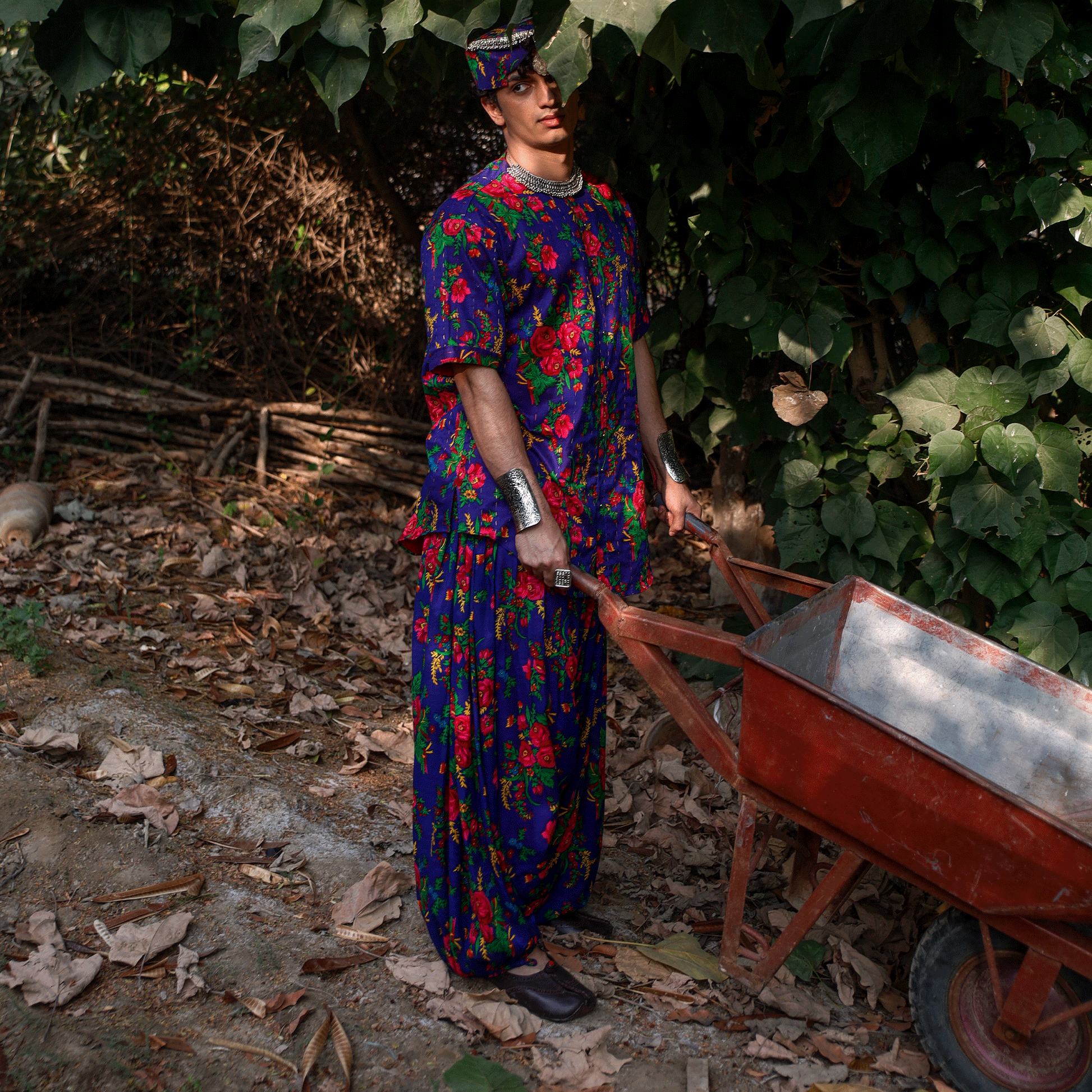 Basti - OI is our signature layered drape shalwar, reimagined in floral printed fabric with velvet detailing. Balancing structure and fluidity, it features functional side pockets and a relaxed silhouette. A statement piece that embodies comfort with character, finished with YBQ signature Heart and Braille logos.