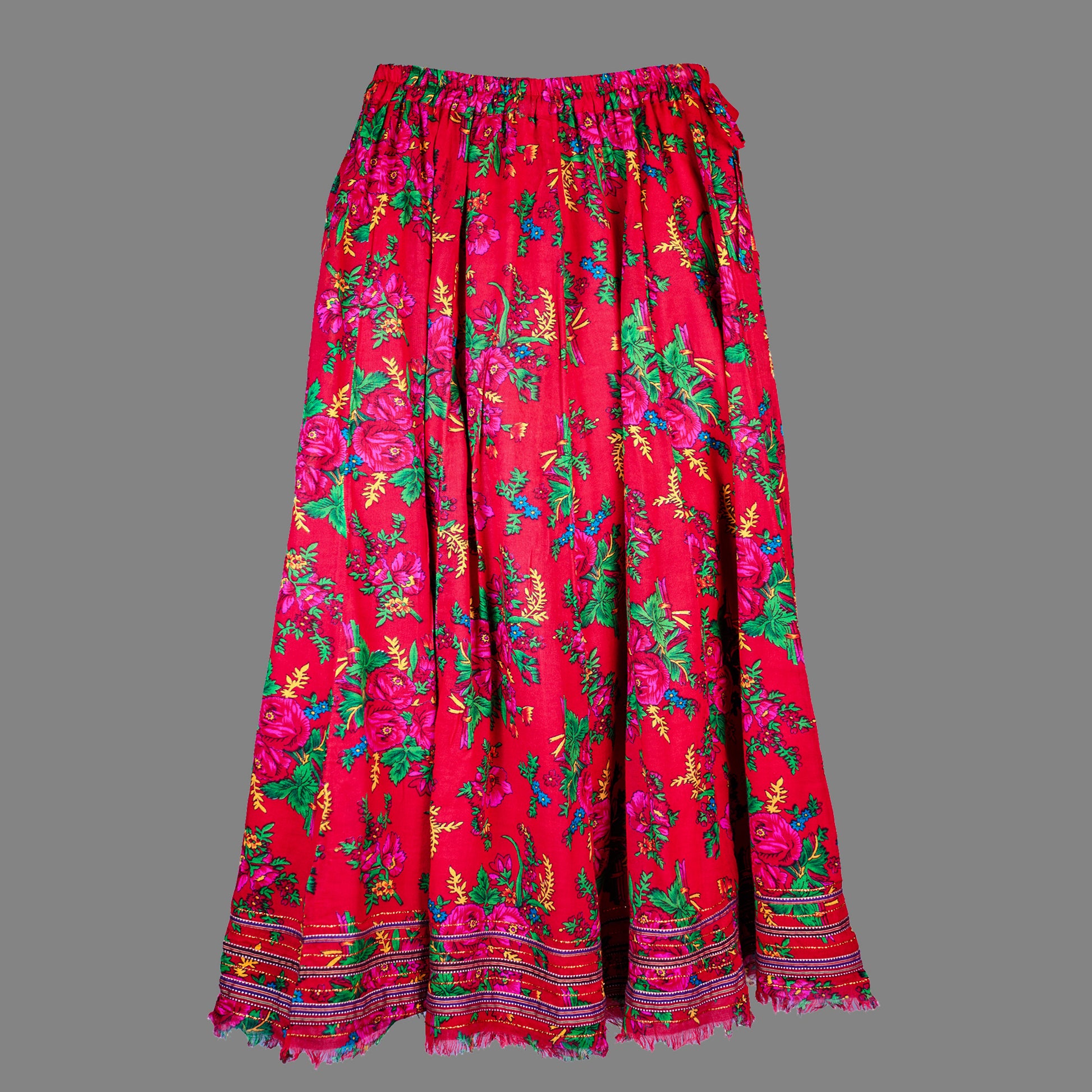 Kamna - OI is YBQ’s panelled lehenga featuring ten structured panels in floral printed fabric. Frayed edges at the hem enhance its raw appeal, while traditional Susi got a contrast lace detailing adds cultural depth. Designed with side pockets and a drawstring waist, Kamna - OI is finished with YBQ signature Heart and Braille logos.